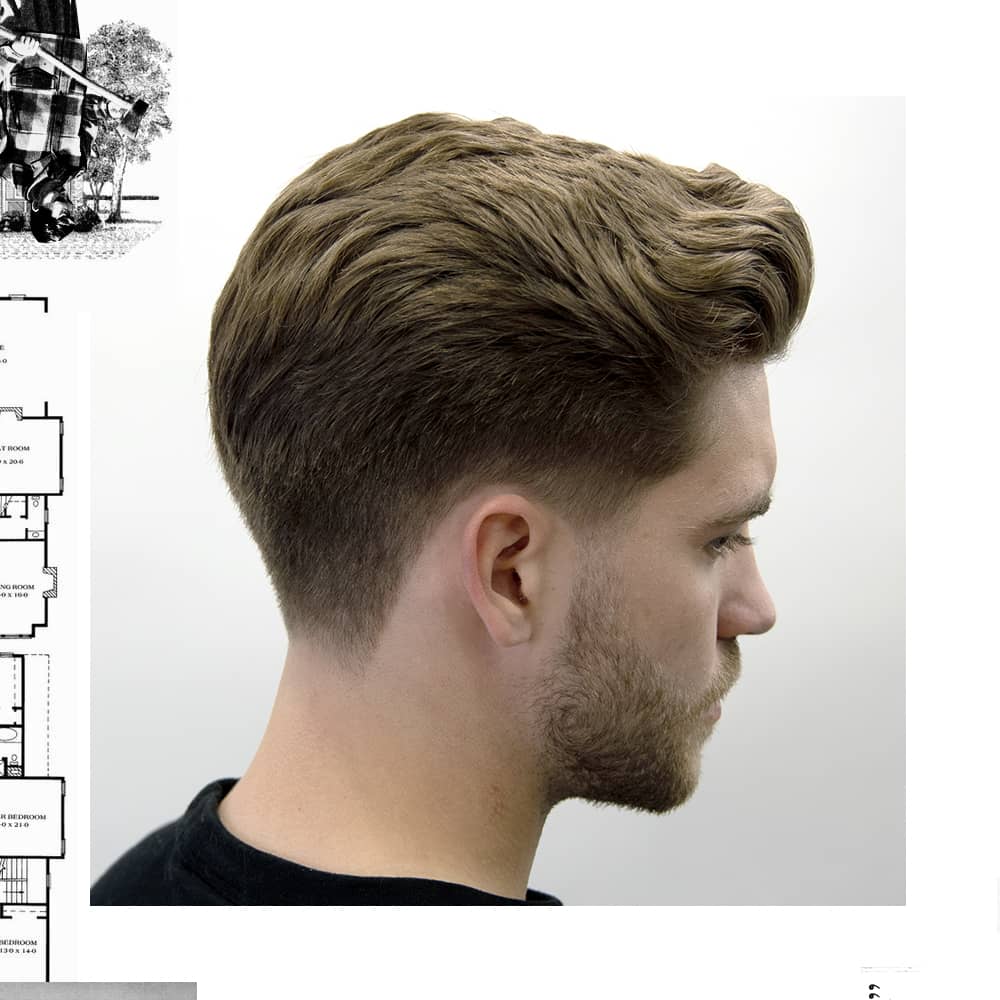 Like in this example, the hair can be left with a natural, low shine finish using Foam Tonic, for the average day to day. Or, for a more formal occasion, this cut could be styled into a slick back with the help of a higher hold and shine product, like Deluxe Pomade.