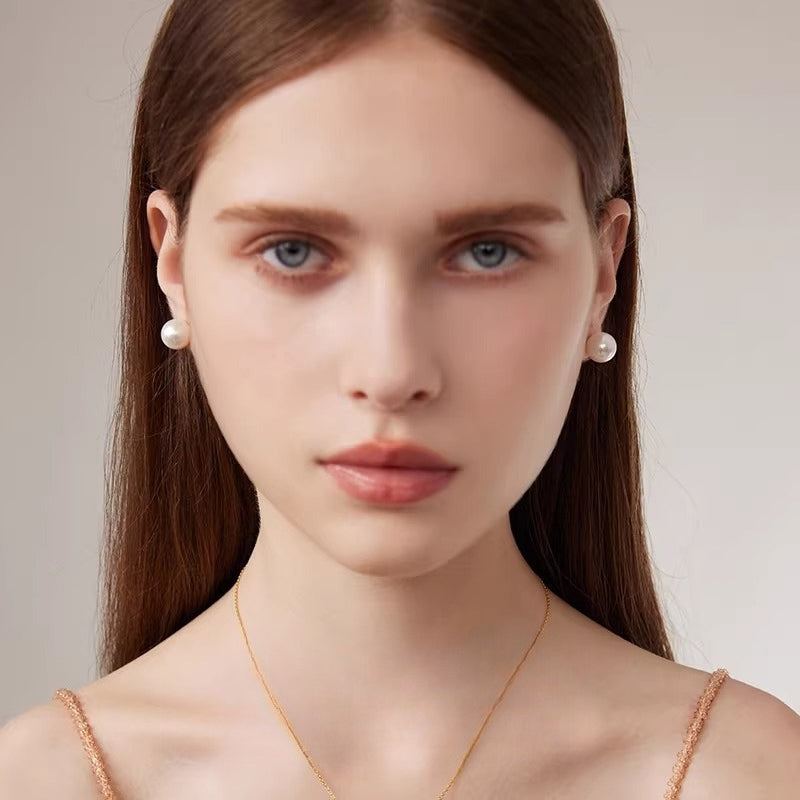 Color classification: Perfectly round/strong luster 18K gold pearl stud earrings (order comes with 3 pairs of K gold earring backs/1 year free maintenance service)